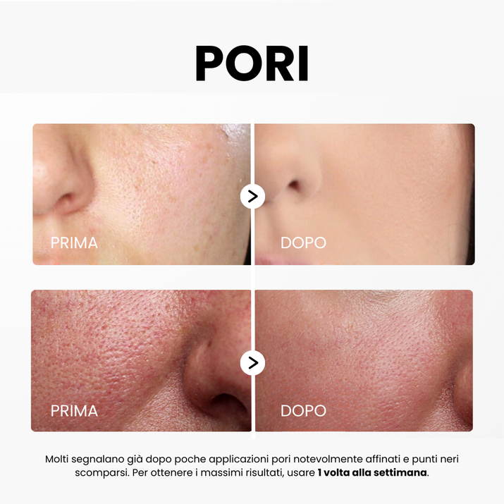 Già dalla prima applicazione noterai la differenza: i pori ostruiti, le cellule morte e i punti neri si staccano visibilmente.